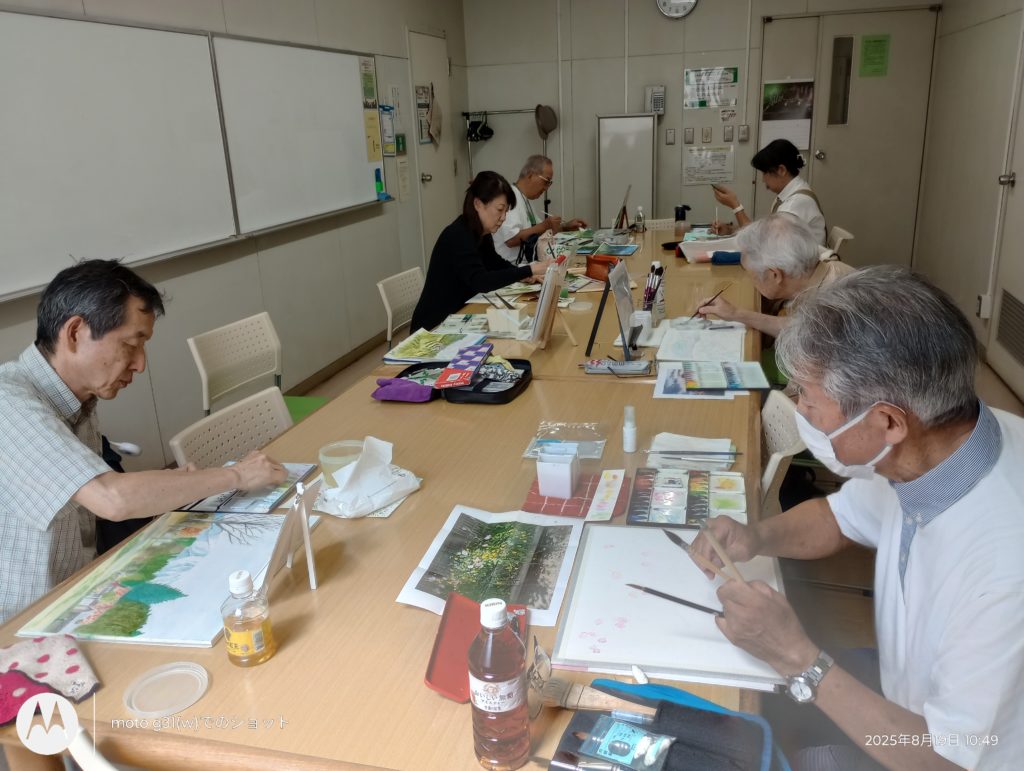 8月の自由スケッチ会を19日に開き、会場の「ばるーん」に来るだけでも、大仕事の猛暑の中、7名が集まりました。
