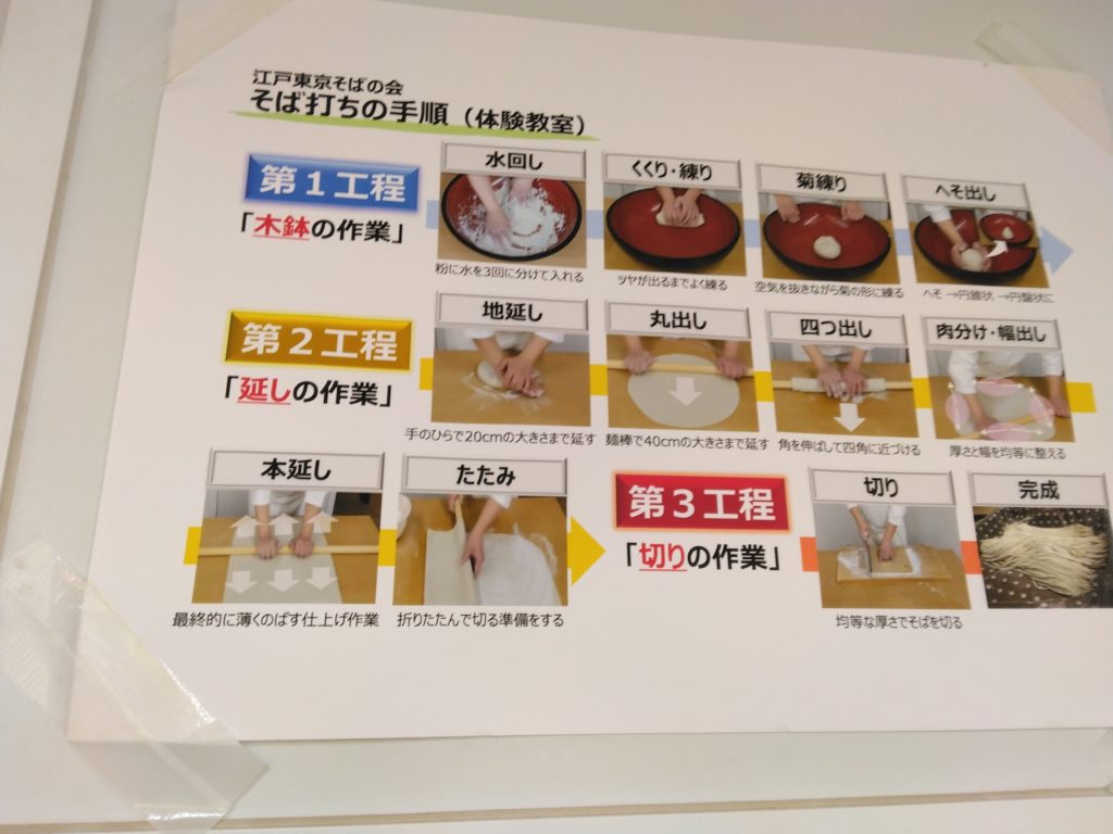 今回は新蕎麦にチャレンジで北海道産「きたみつき」800gを二八で打ちました。 師の前田先生より事前実演・説明の中で蕎麦の出来栄えの良し悪しは最初の第1工程木鉢の水回し作業。1分間の極めて短い時間に素早く粉に水分を充分浸透させられるかがキーポイント。極めて短時間にスピードが求められる水回しでした。