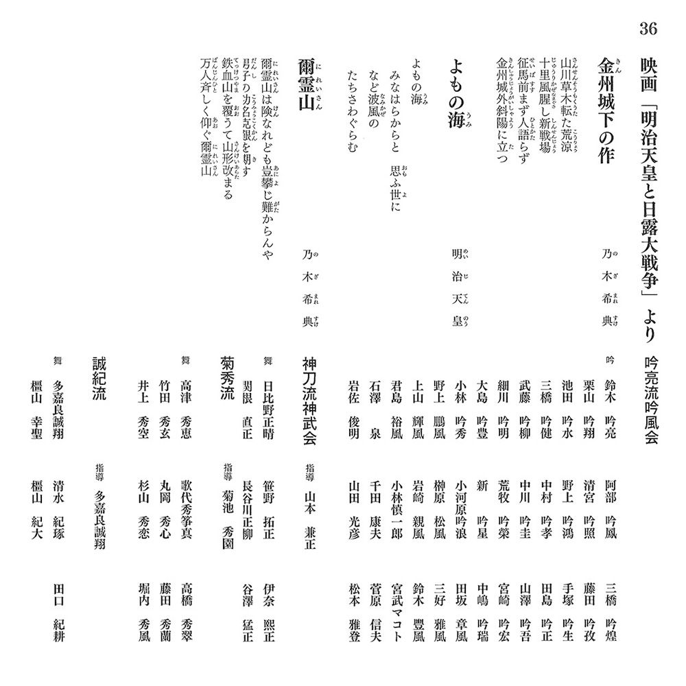 吟亮流会員とともに、「金州城下の作」「爾霊山」の二題を声高らかに吟いあげました。思えば7月に初めて詩吟というものに触れ、その4ヶ月後には武道館のステージに上がるという信じられないスピードでの目標達成でした。これも福井先生の無駄のないご指導のおかげと、感謝申し上げます。今回の武道館での演技会は7年ぶりとのこと、4000名もの参加者が全国から集まり吟ずる舞台は圧巻でした。 今回吟じた二題は昭和32年新東宝制作「明治天皇と日露大戦争」の中の挿入曲ですが、鈴木吟亮初代吟亮会長が聴け、映愛会会員の私にとり映画と詩吟の不思議なつながりを知る良い機会でした。(菅原信夫)