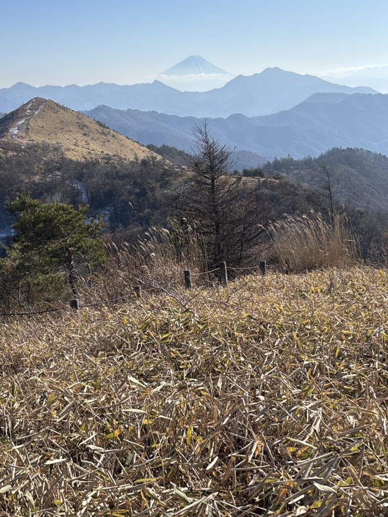 枯草に覆われた平らなところでそこからの展望は何と言ったらよいか本当に素晴らしい。南アルプス方向はうすい靄の上にそびえてる姿は幻想的である。八ヶ岳は谷沿いに雪があり美しくも厳しい姿、うっとりしてしまう。