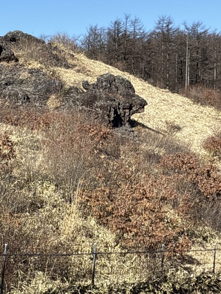 11:50 しし岩登山口到着、不思議な格好の岩があり横から見ると獅子の顔に見える。(写真03)