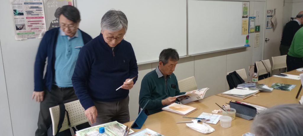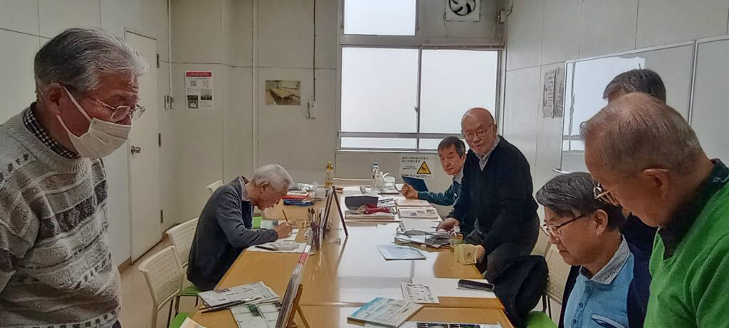 2026年最初の自由スケッチ会が港区生涯学習センター「ばるーん」で開かれ、7名の彩遊会会員と1名の入会希望者が集まりました。