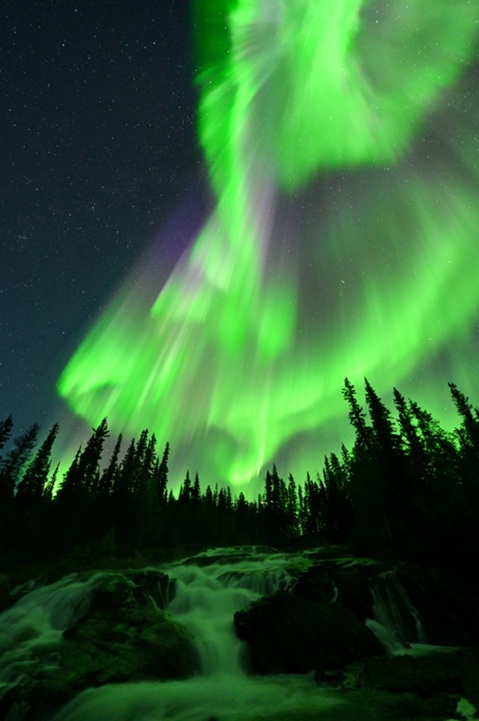 イエローナイフは「オーロラの聖地」と呼ばれ、北緯60~70度にはさまれたオーロラベルトの中央に位置し、年間を通じてオーロラが現われる可能性が高い場所である。