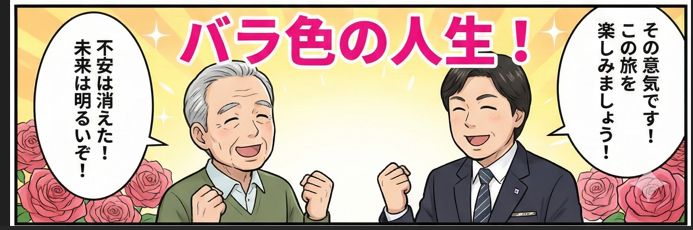 百寿俱楽部のスローガンは「生涯青春!人生薔薇色!」。この言葉には、年齢を重ねることを嘆くのではなく、知恵と経験という名の勲章を胸に、情熱と好奇心を失わずに日々を謳歌しようという、百寿俱楽部の前向きな決意が込められています。